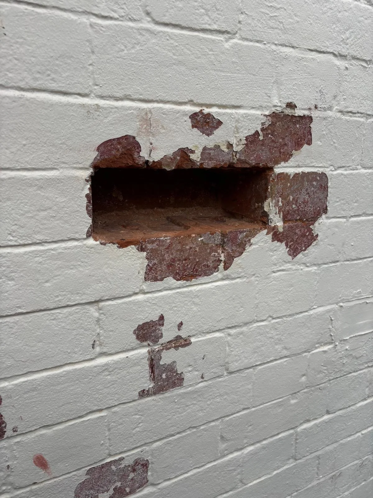 The structural wall was first reinforced with acro props to safely take the building load, allowing the removal of the old defective timber to begin.